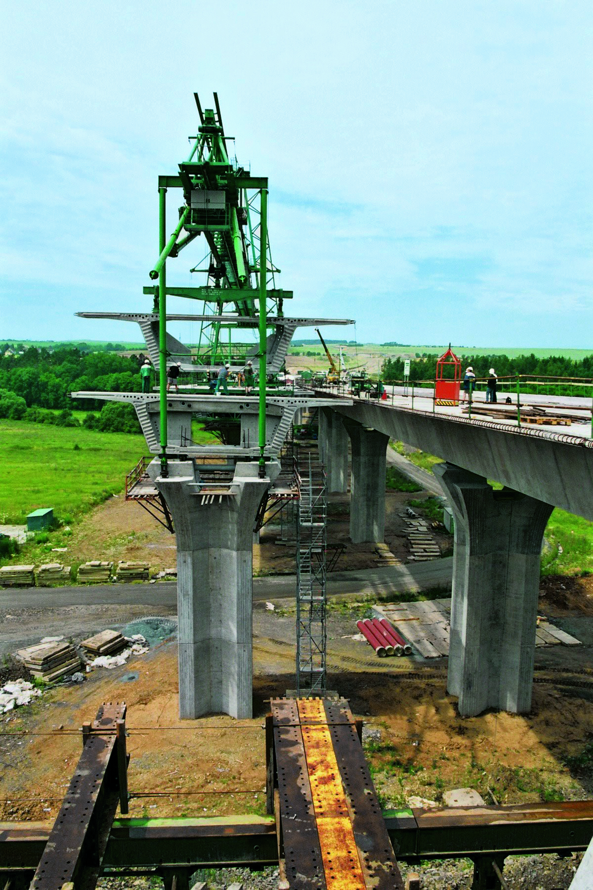 The bridge has an overall length of 445 m, a width of 27.5 m and is founded on a total of 9 piers. The overall costs for these construction works amount to about EUR 19 million. A precast segmental concrete bridge design was chosen in order to complete the construction project in the shortest amount of time possible. About 400 precast concrete segments were produced in a precast concrete products plant near Prague.