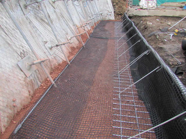 DYWIDAG worked with Huesker - a global manufacturer of geosynthetics, agricultural, and industrial textiles - to develop a part to connect the soil nail and geogrid system, considering ease of construction, design life, and settlement issues of the reinforced soil over time. DYWIDAG carried out in-house testing on the connection piece.
