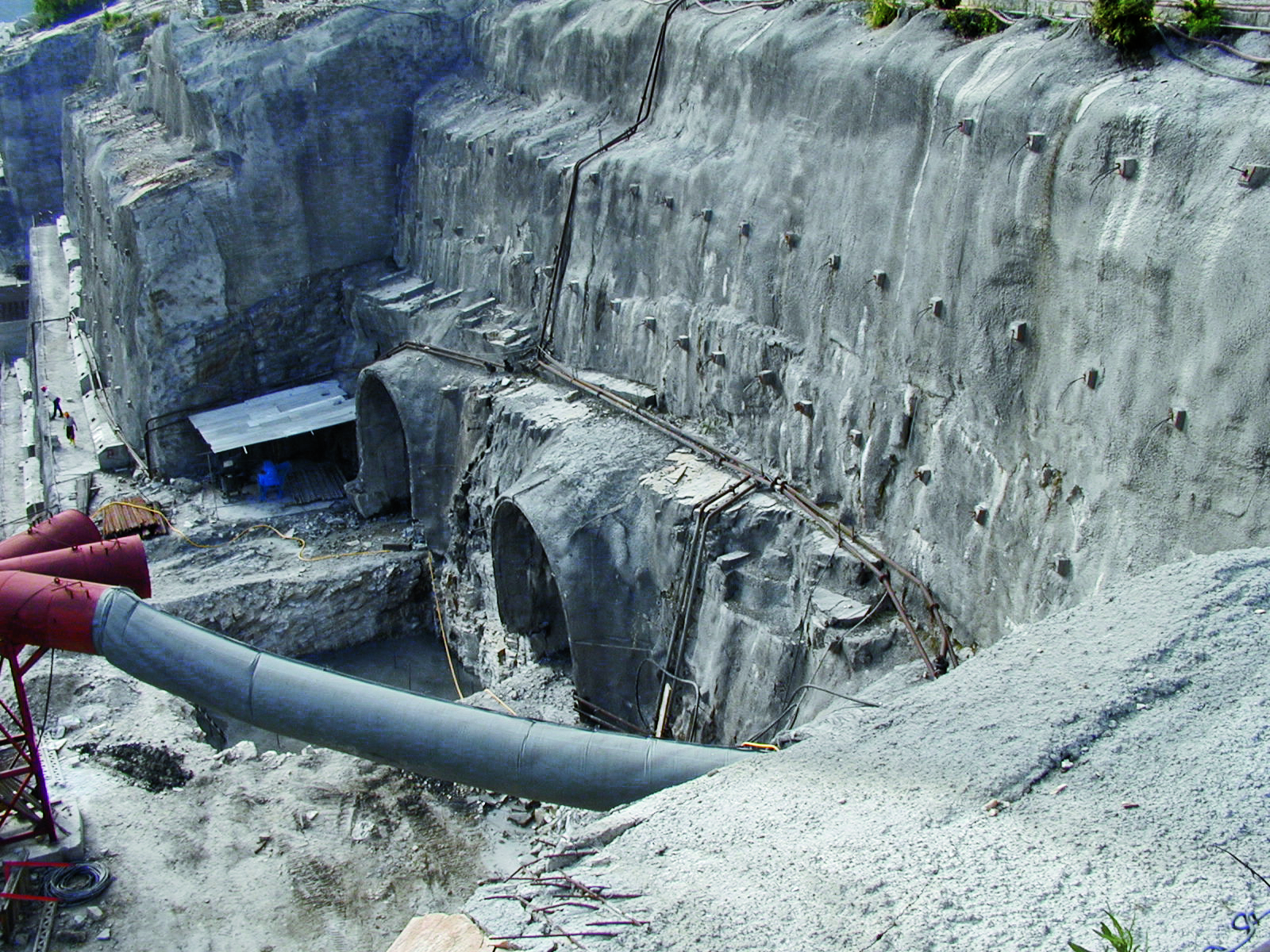 As a result, only a relatively small dam is required that mainly serves as an equalizing basin. In particular, the difficult geological conditions of the Himalayan Mountains present certain challenges for all parties involved in the project. Within a few meters very hard and stable quartzite seams alternate with instable and swelling phylites. Decisions must be frequently made at short notice how the various slopes and the associated tunnel are to be stabilized.