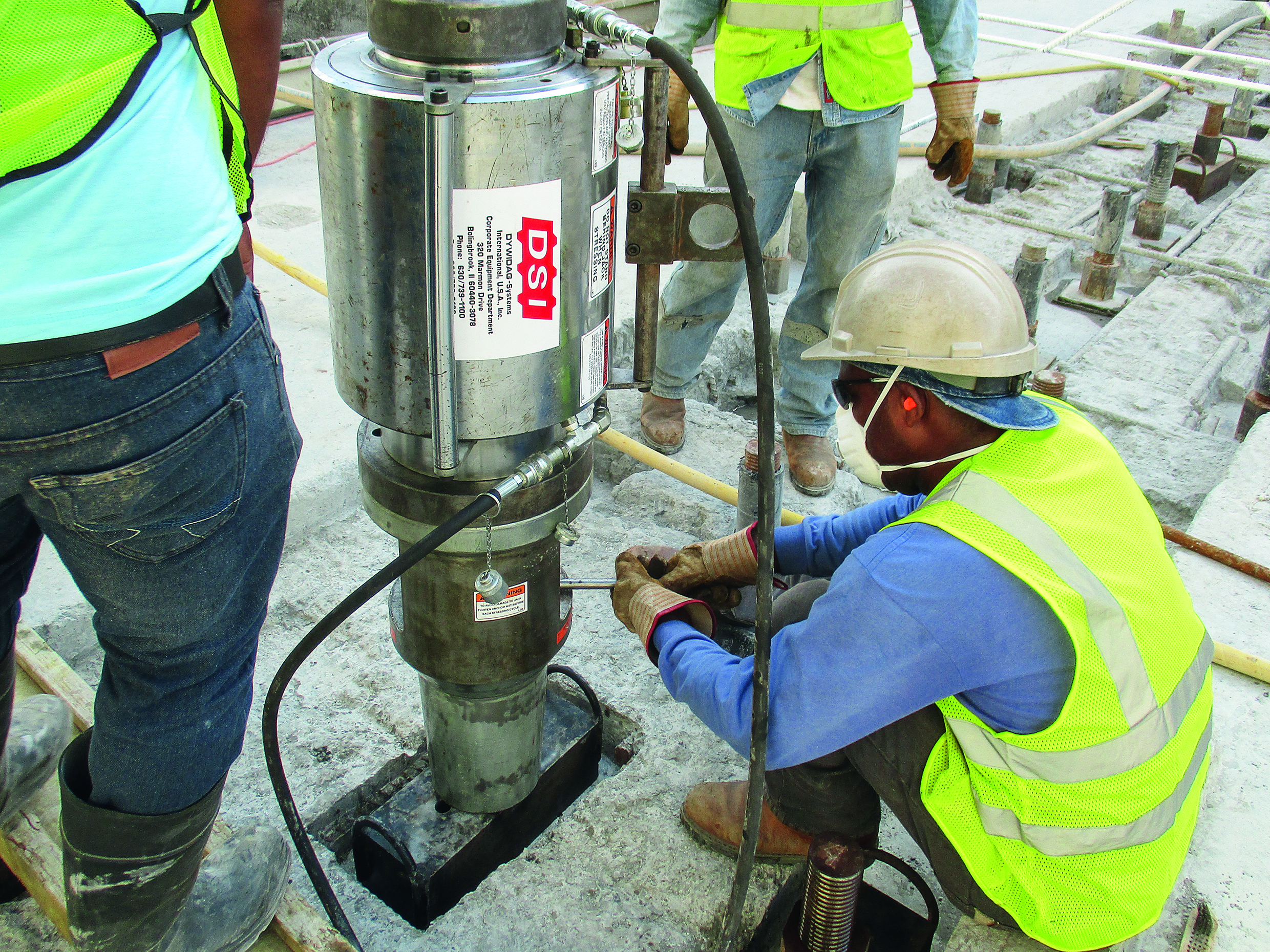 DYWIDAG supplied the bar tendons complete with 180 nuts and 180 steel anchor plates. The individual bar tendons were vertically installed into the sills using 1,000 spacers and were stressed afterwards. DYWIDAG also provided the 4 stressing jacks needed for post-tensioning and provided on-site technical assistance.