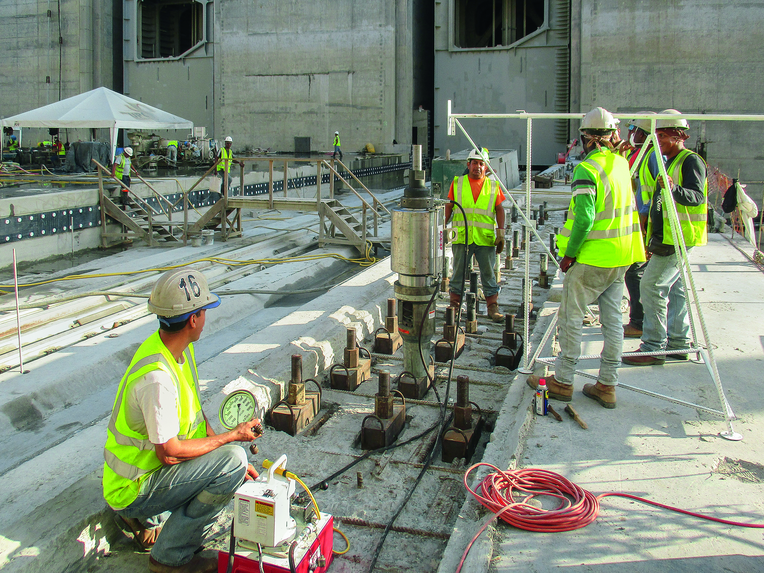 As a precaution, the General Contractor decided to also reinforce the three sills of the Agua Clara Lock Complex on the Atlantic side in addition to the three sills that divide the chambers in the Cocoli Lock Complex on the Pacific Side using bar tendons.