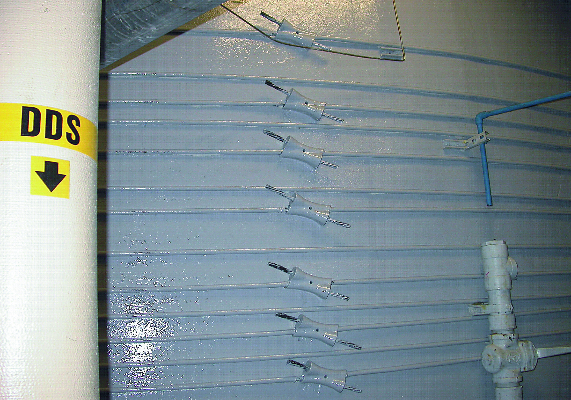 However, in their existing form the tanks were not capable of accommodating the additional pressure caused by an increased volume. For the strengthening of the walls the engineers considered the subsequent installation of external horizontal prestressing strands more efficient than strengthening through an additional horizontal reinforcement.