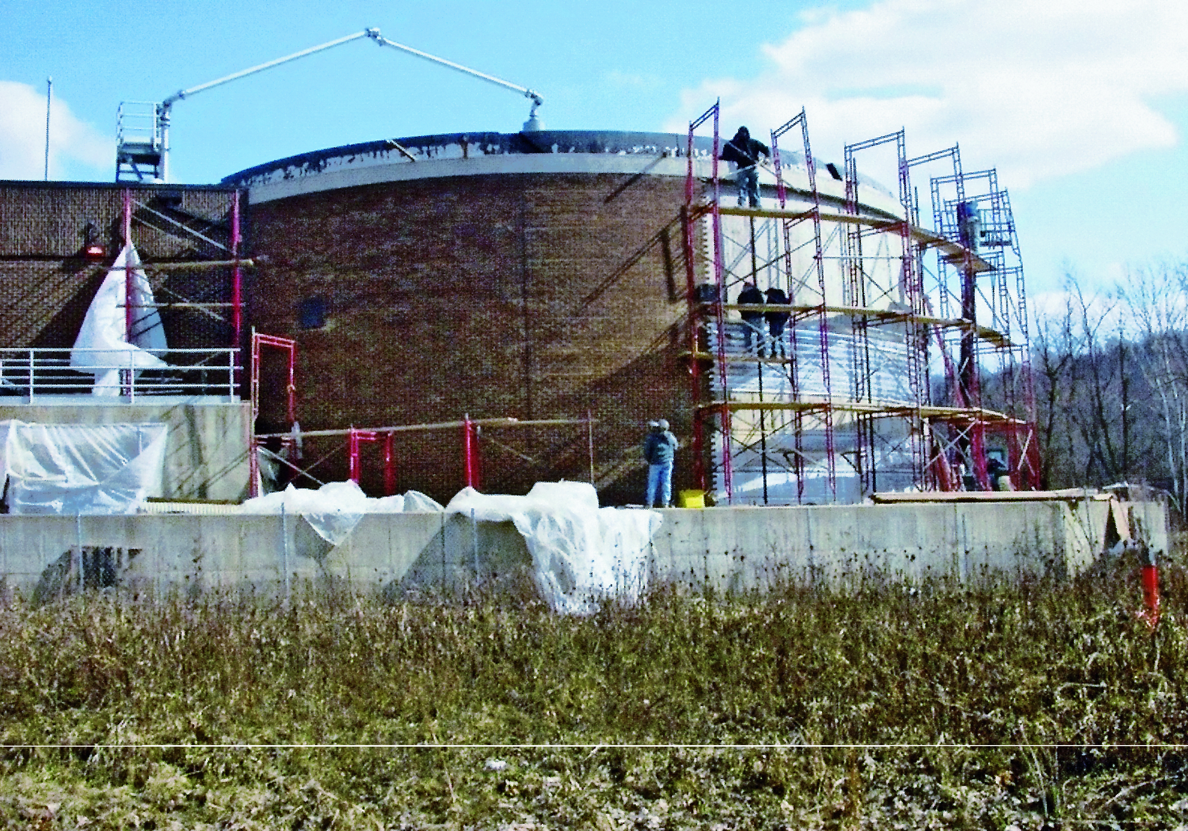 DYWIDAG was contracted by Fox Rothschild on behalf of Lexington Insurance Company in December, 2004 to strengthen the two concrete digester tanks. To this end, the clay bricks on the outside surface of the tanks were first removed. Some soil excavation was performed in order to access the portion of the tanks below ground level.