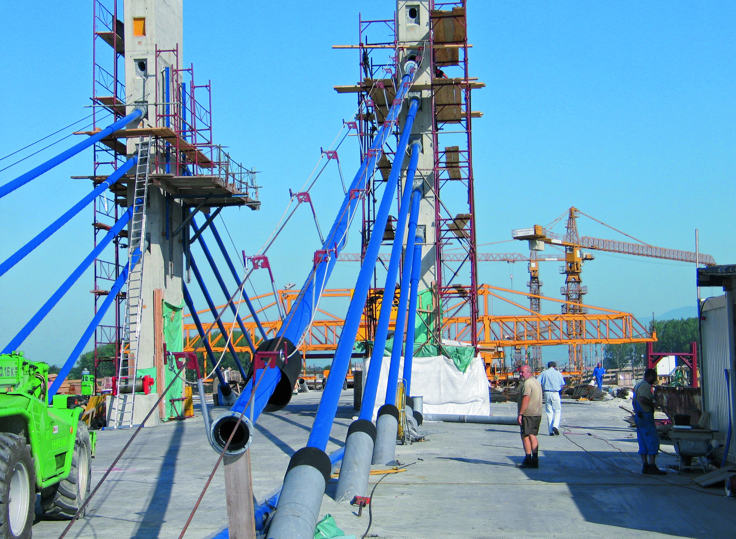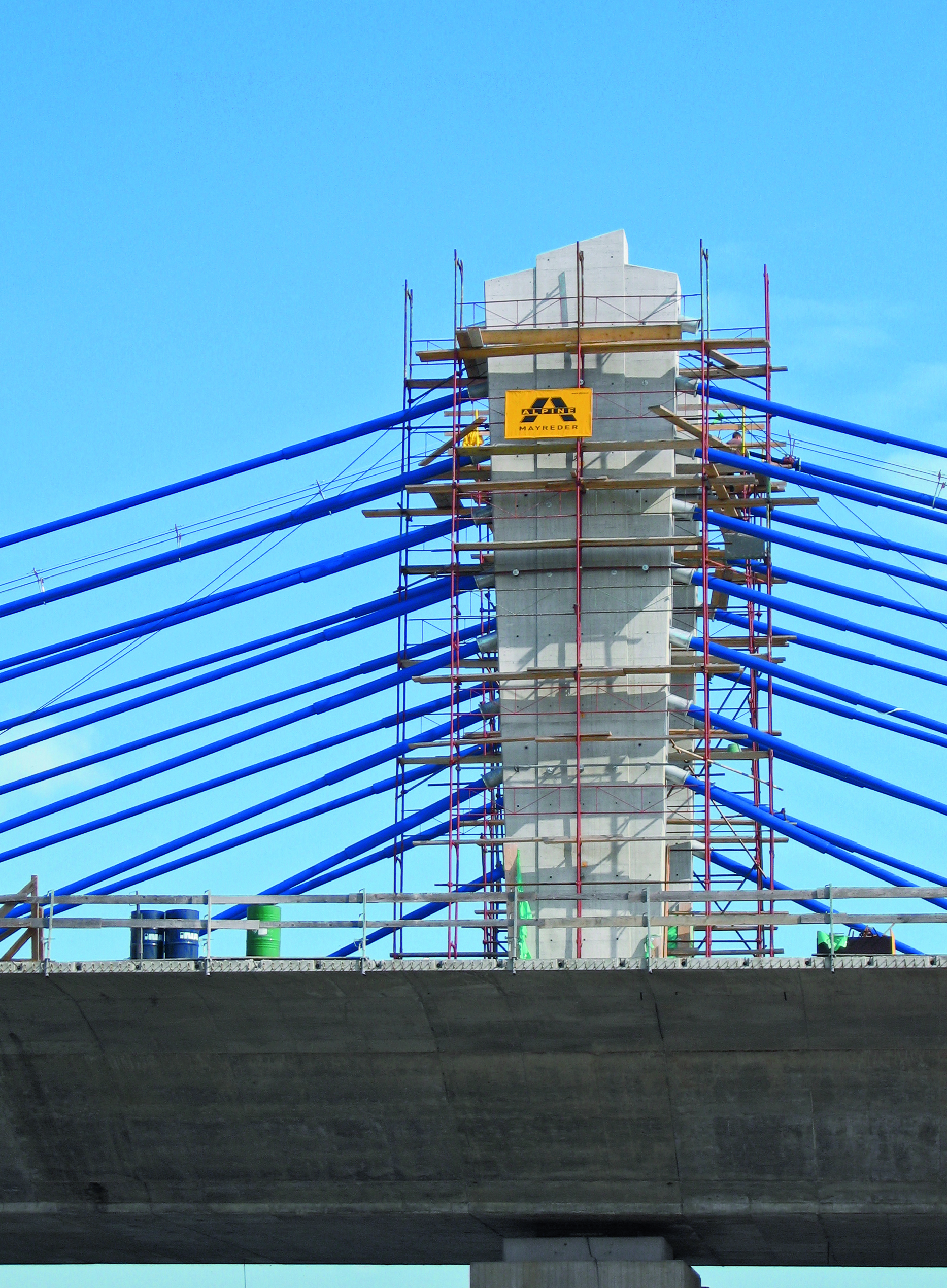 A total of 2x8 pairs of DYWIDAG Stay Cables consisting of 48x15.7 mm strands are used to carry the total load of the bridge deck. All approach spans were constructed span by span on scaffolding.