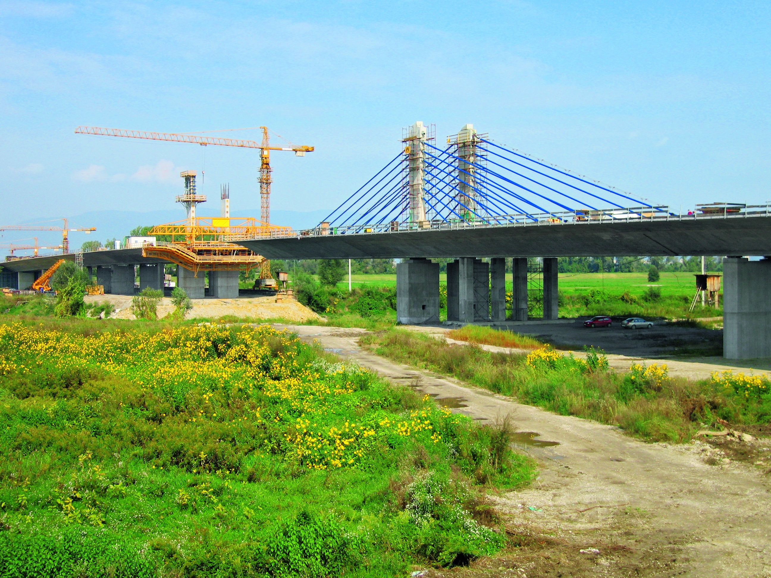 The 840m-long "Domovinski" Bridge will not only ease traffic congestion between the inner city and the industrial and airport area, but also carry two water pipelines. One will transport the waste water from the inner city to the new wastewater treatment plant and the other will supply the areas on the river left bank with drinking water as the drinking water pumping sites are located on the right bank.