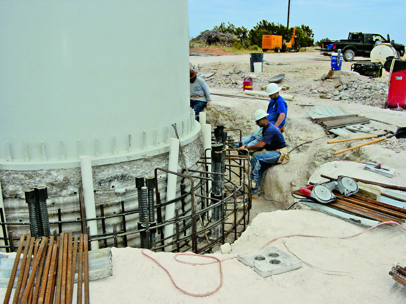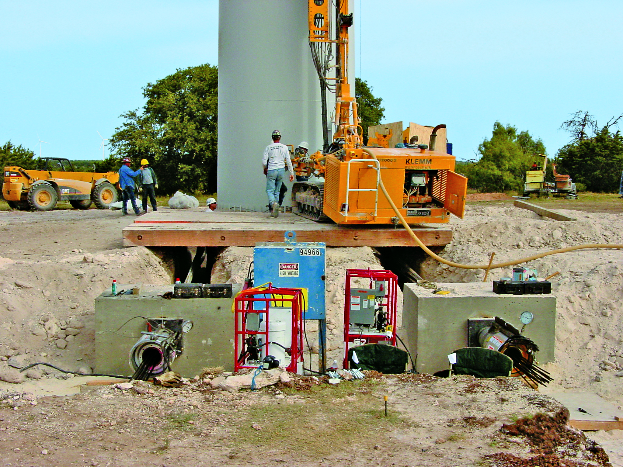 Also in the USA windmills for generating electric power are being built at an ever increasing rate. In addition to mechanical engineering problems, the structural engineering problem of anchoring the towers in the soil must be solved. One system uses double concentric rings of vertical bars (about 240 pcs. with lengths varying from 5.5 to 8.0 m) which serve as ground anchors and anchor bolts for the steel towers.