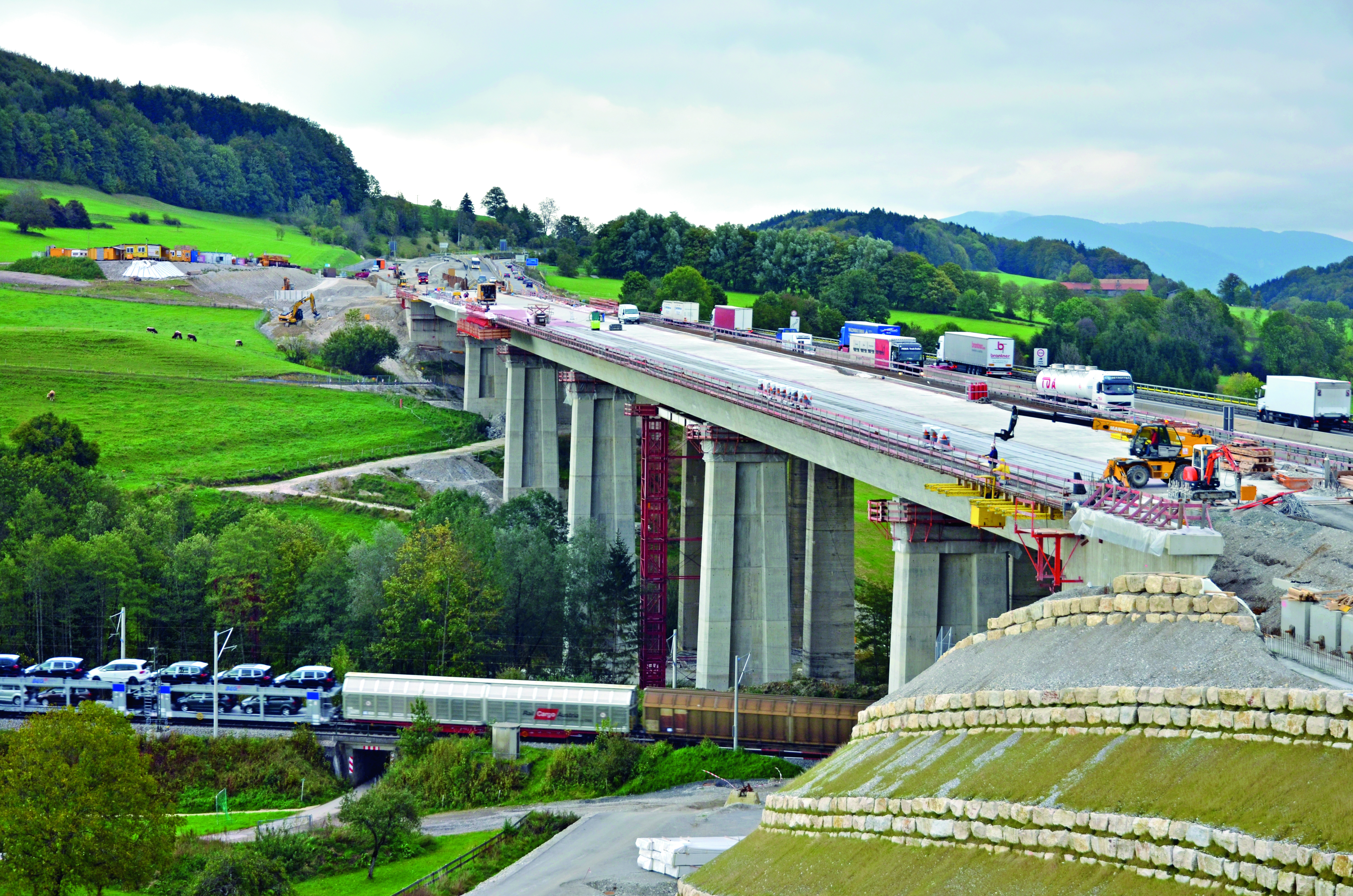The Talbruecke bridge was built in 1937 on the A8 Motorway south-east of the town of Chiemsee. A comprehensive repair of the bridge would not have made sense either economically or technically, so a new bridge with two separate superstructures is being built 11.63m north of the old structure. The new bridge will include two lanes per direction at first, but is designed for a future widening to 6 lanes.