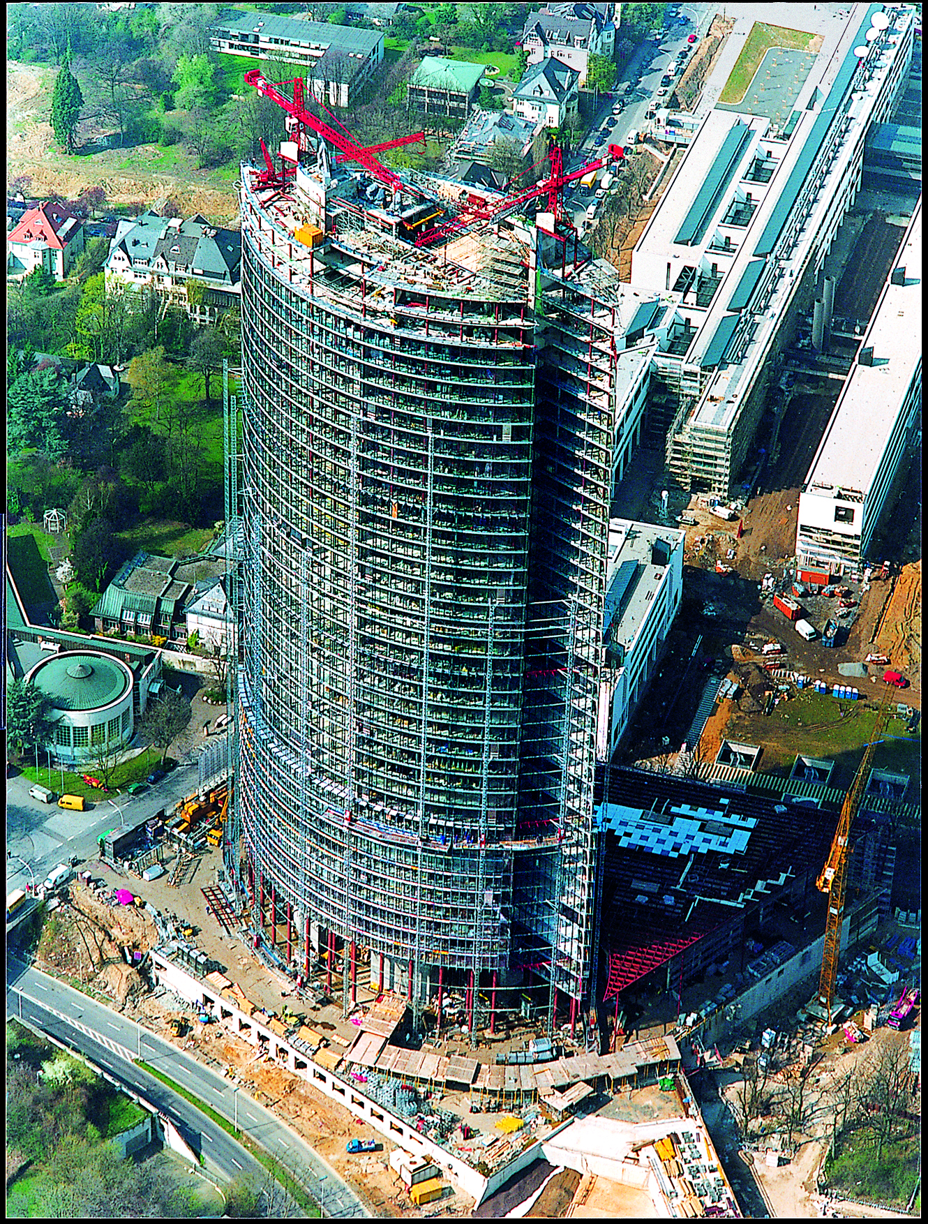 A new head office for Deutsche Post World Net is currently under construction in Bonn's former government district, south of the building commonly known as the "Langer Eugen". The so-called "Post-Tower" was designed by the German-U.S. architect Helmut Jahn. With its height of 162.5 m it will rise above all other office complexes in the state of North Rhine-Westphalia after completion.