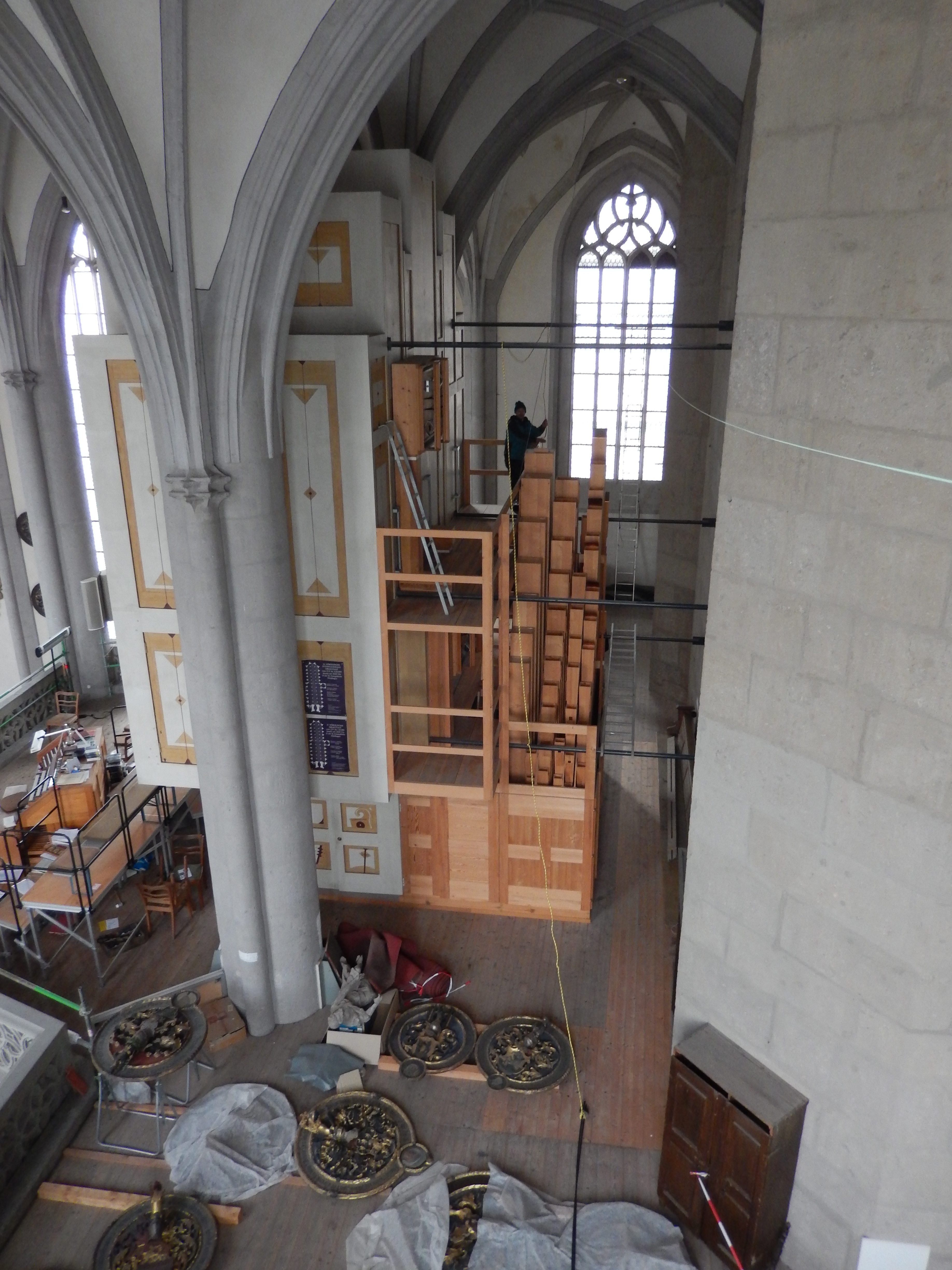 To secure the nave during repair work, experienced employees of DYWIDAG installed transverse tendons across the nave. This tensioning system transferred the complete load from the pillars to the rest of the façade. The tensioned strands served to accommodate the loads inside the structure.
