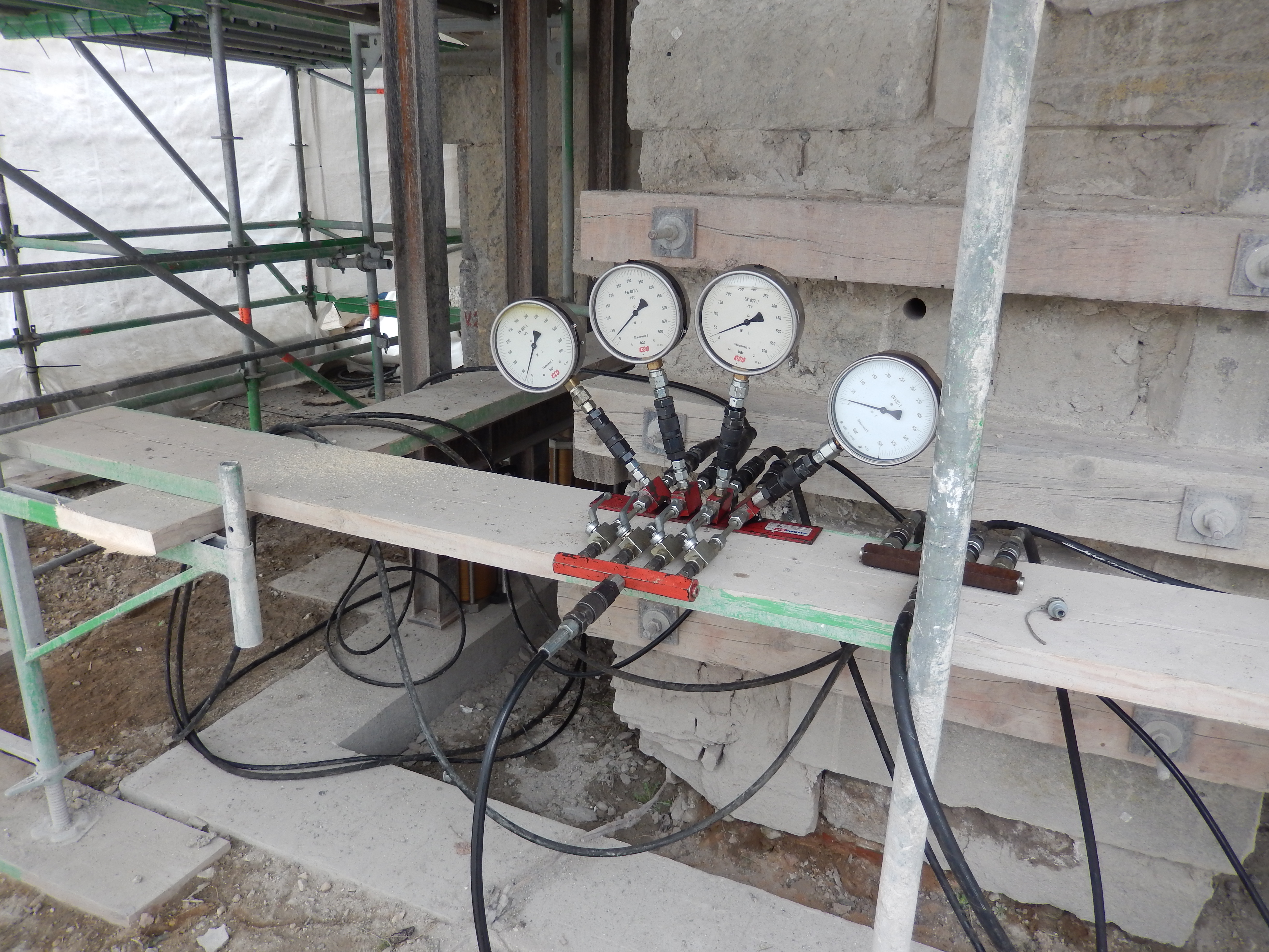 In the course of time, freezing water and crystallizing salts caused damage to the load-bearing pillars of the St George church. Furthermore, core fractures have formed inside the church that limit the load-bearing capacity of the building.