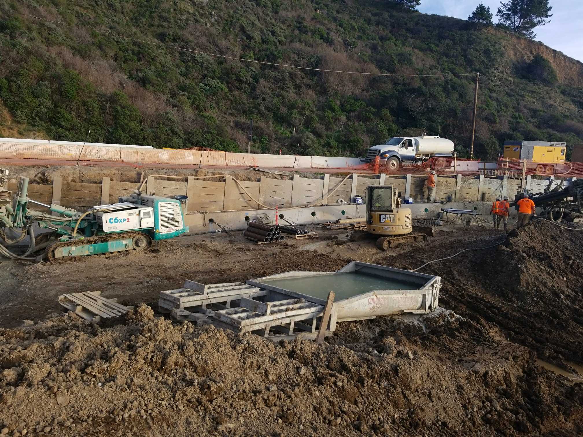 To repair this section, retaining walls were built along the roadway into which the subcontractor, Pacific Coast Drilling, installed 271 permanent Type 4-0.6“ DYWIDAG Strand Anchors. Due to the prevailing soil conditions, the anchors could only be installed very slowly, and casings had to be used.