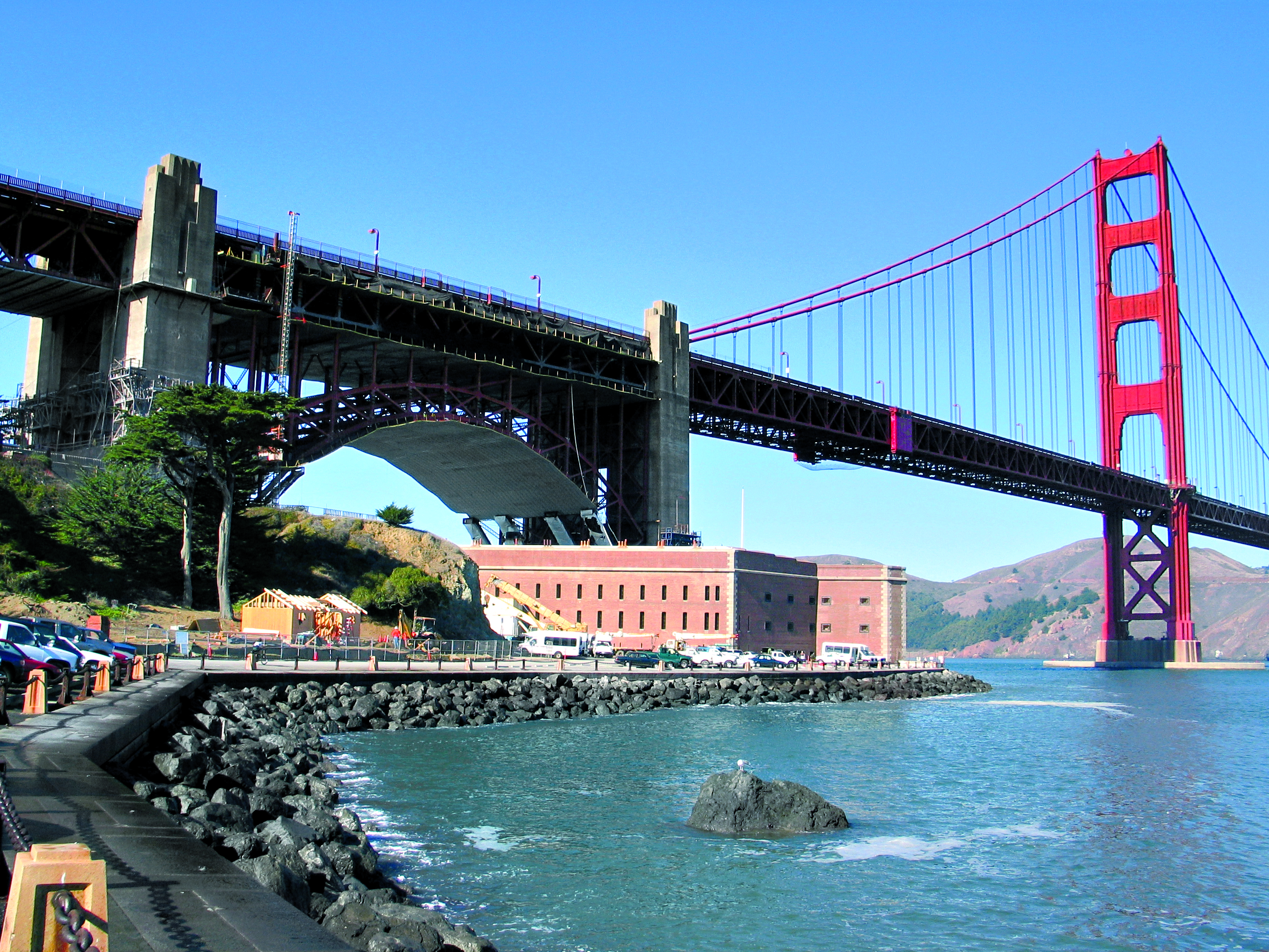 Since 1937 the bridge has served as a vital link in California's highway system, it crossed by approximately 40 million vehicles every year. At the same time the Golden Gate Bridge with over nine million visitors each year is a landmark of the City of San Francisco. It is why, the Highway and Transportation District (District) - the public agency that operates the Bridge - undertook a comprehensive vulnerability study of the bridge. The engineers determined that the north and south approaches as well as the main span would experience significant damage during a major vent. Retrofitting the Golden Gate Bridge to withstand possible earthquakes of magnitude 8.3 was therefore imperative.