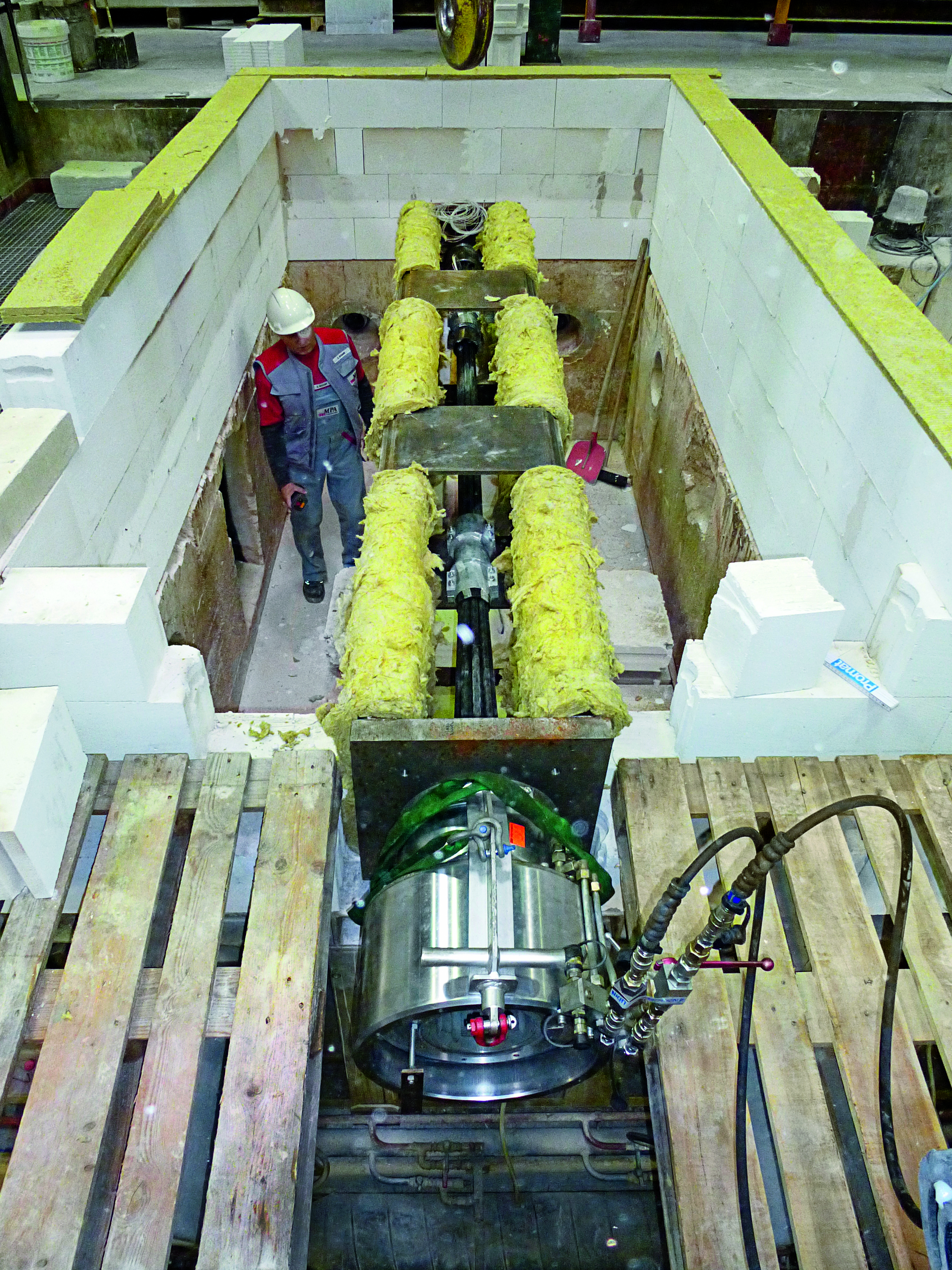 In order to measure the temperature, several sensors were mounted on the strands underneath the mat and on the bare steel components underneath the coating. This test frame was placed in a furnace chamber and exposed to a 1,100°C hydrocarbon fire for 30 minutes. After half an hour, the measured temperature of all sensors stayed below 300°C; in fact, in some areas, the temperature only reached 200°C.