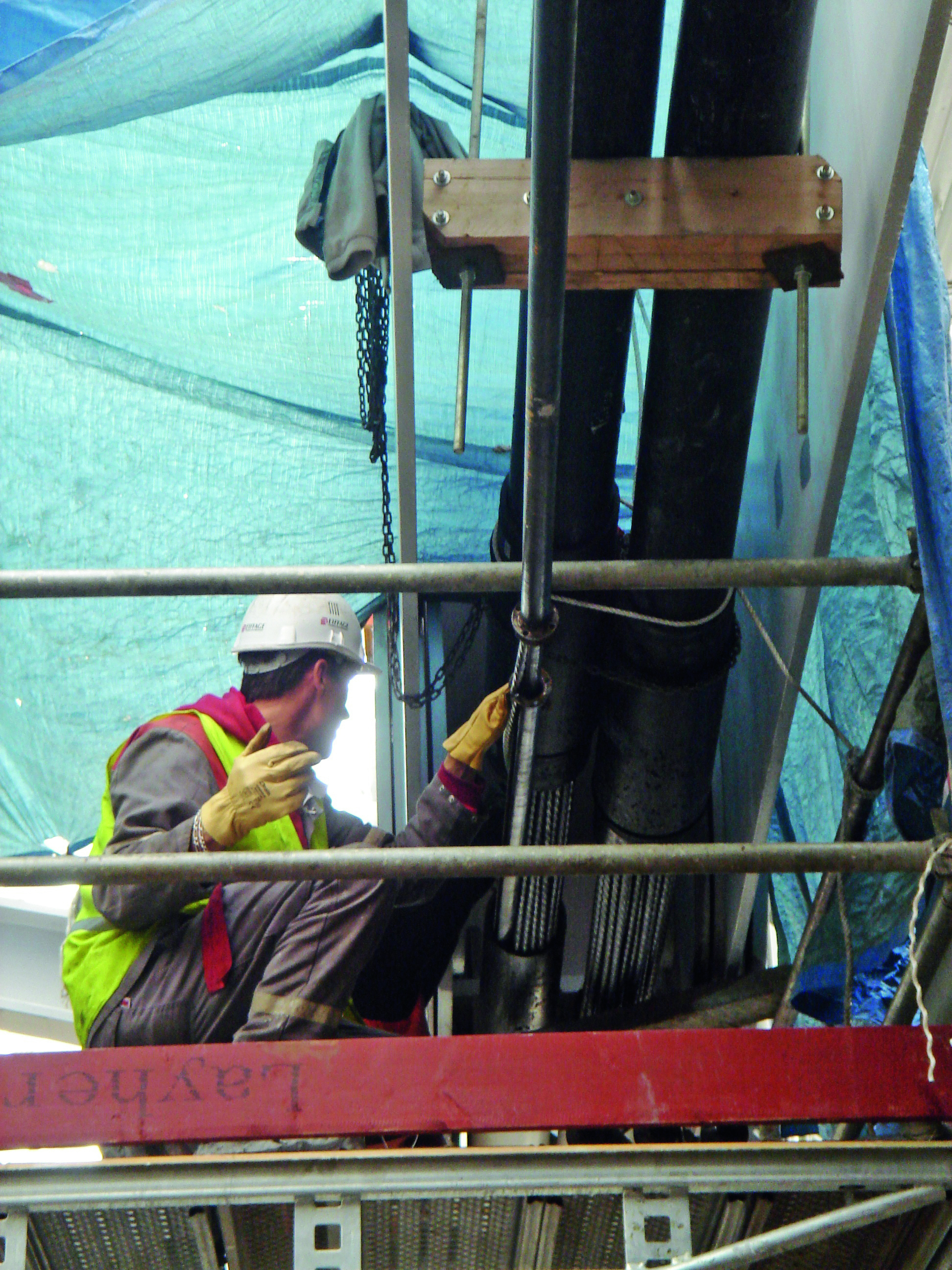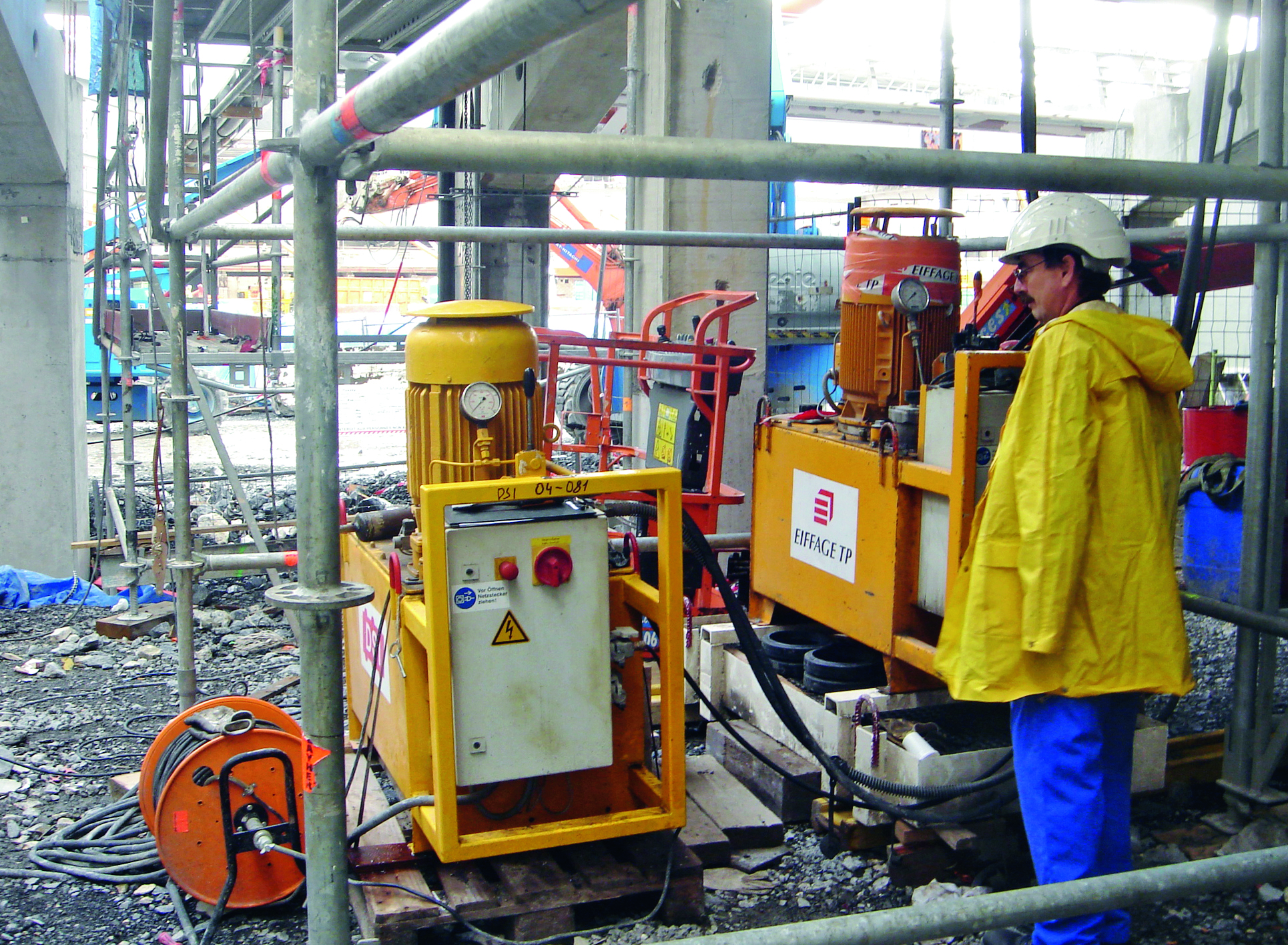 In order to determine friction and to prove the durability of the strand PE sheathing as well as the load-bearing capacity of the deviation saddles, a comprehensive testing program with up to 10,000 load cycles was successfully carried out in DYWIDAG’s test laboratory in Unterschleissheim. The tests were performed in close coordination with the owner and supervised by the Universität der Bundeswehr München.