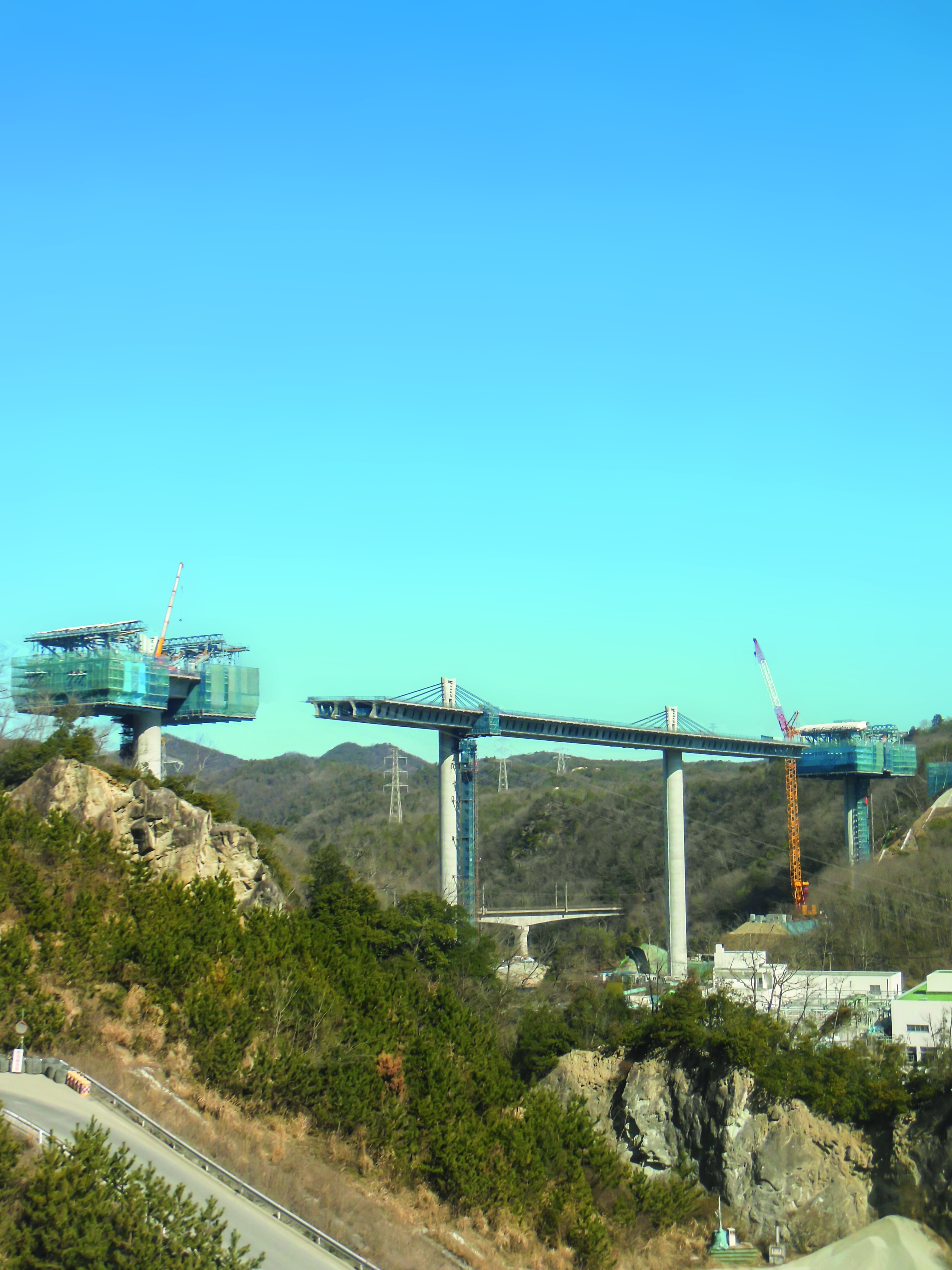 The Shin-Meishin Mukogawa Bridge is located north of Kobe is the world’s first bridge to have been designed as an extradosed bridge combined with butterfly shaped webs for the main girder. This design concept greatly reduced the structure’s weight and enhanced its earthquake resistance.