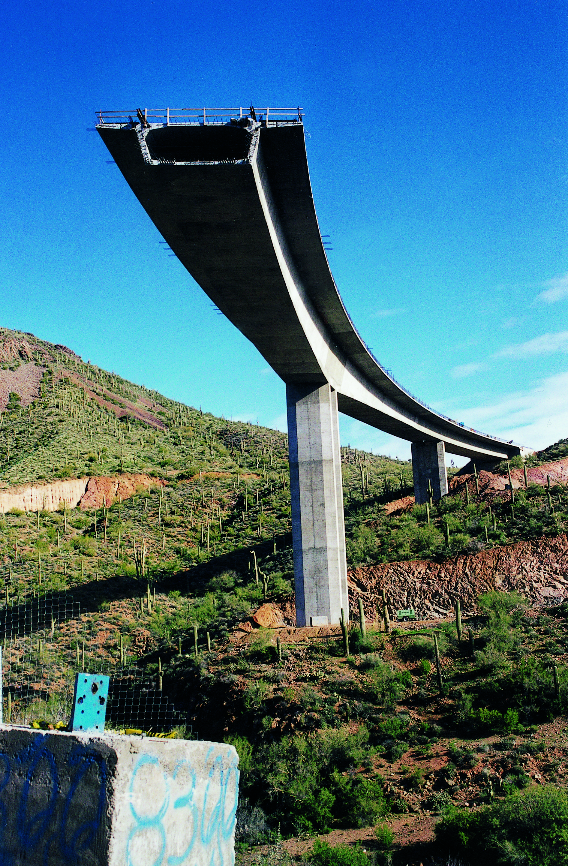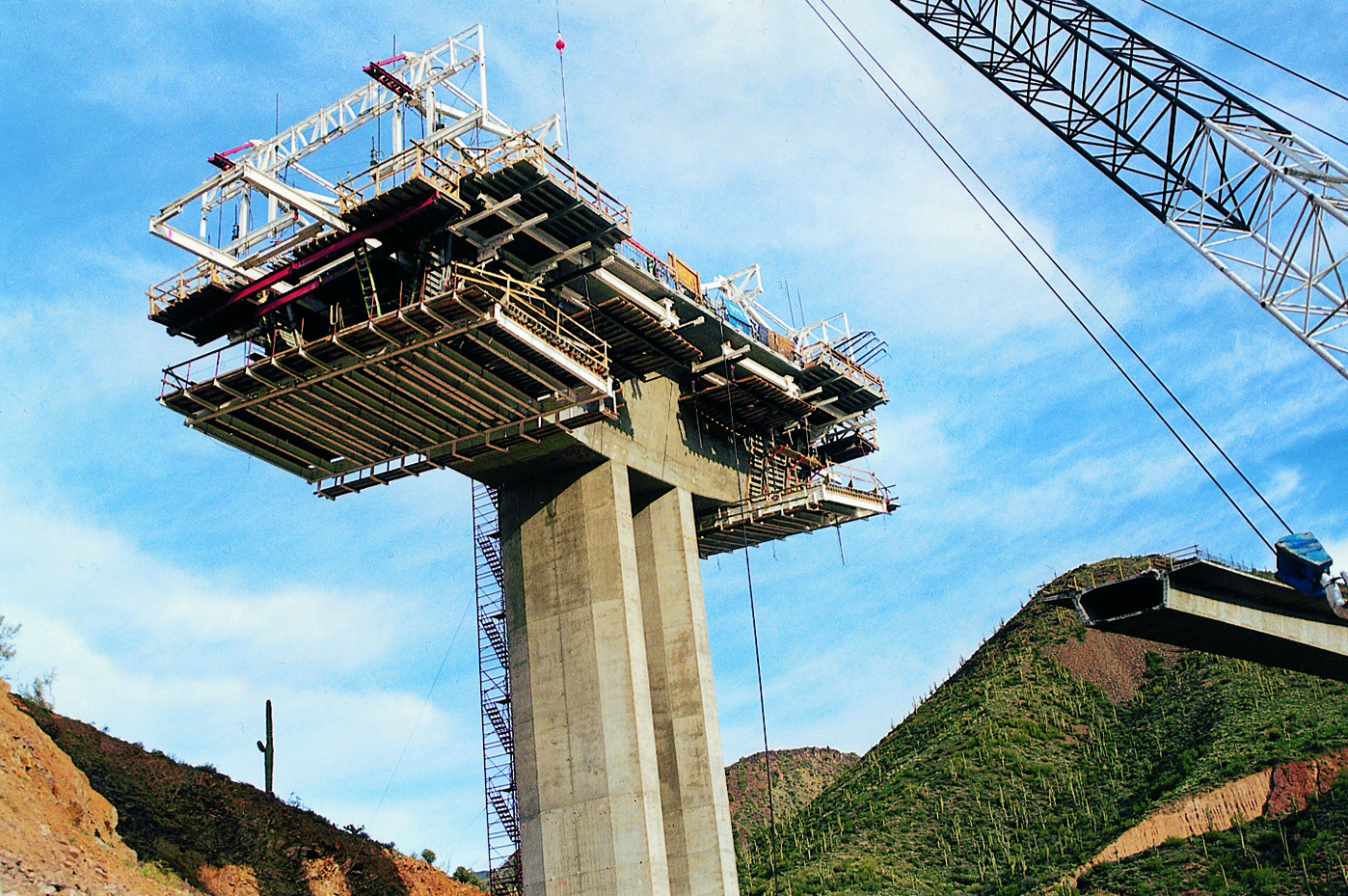 This project is part of a $ 30 million ADOT contract (Arizona Department of Transportation), budgeted for the construction of the Mesa Payson Highway (SR-87), 95 km northeast of Phoenix. Cantilevers on both sides of the pier consisted of 11 bridge segments, each 4.9 m long, 13.7 m wide, and 3 to 5 m deep.